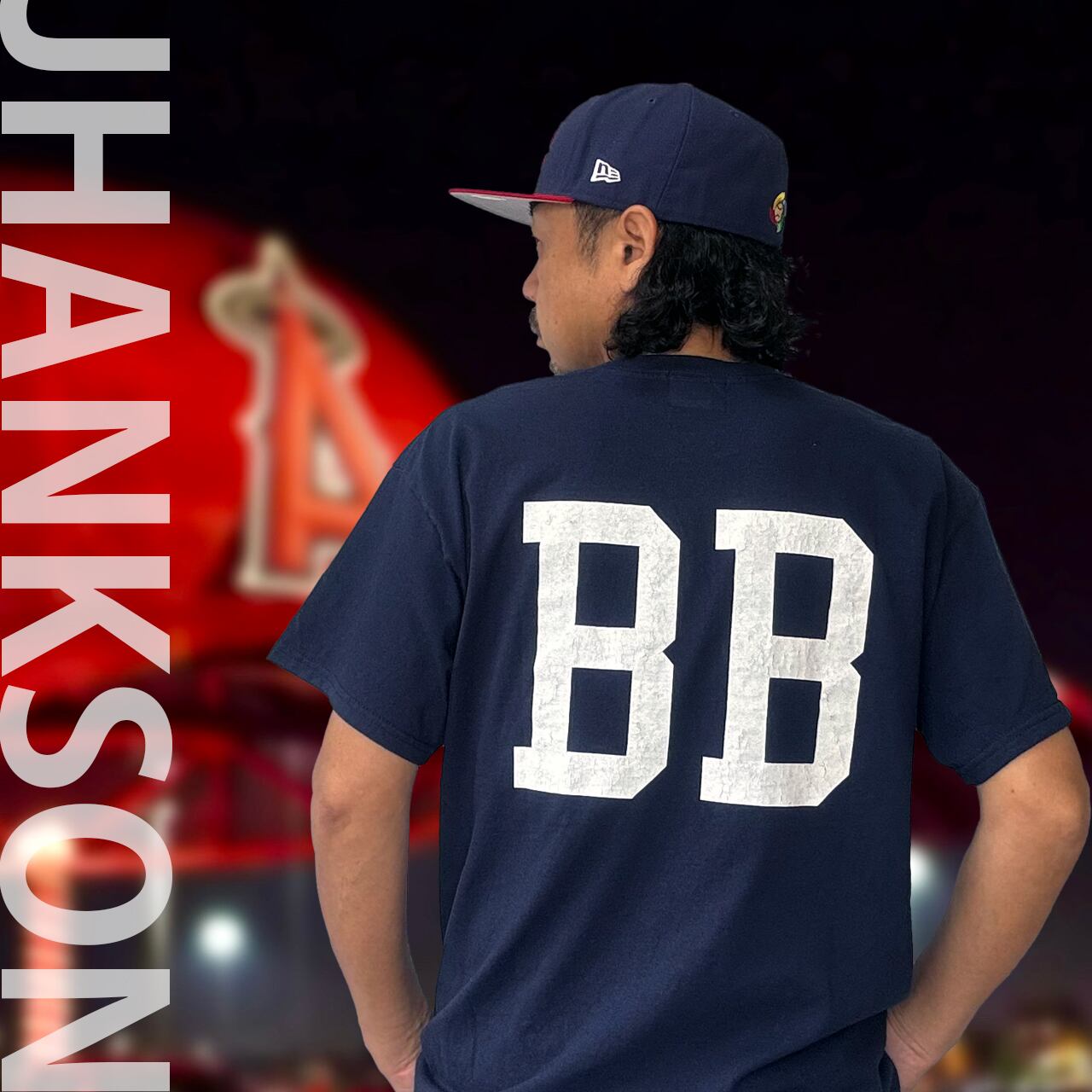 【JHANKSON】B.B(バットボーイ)Tシャツ (ネイビー&スカーレット)